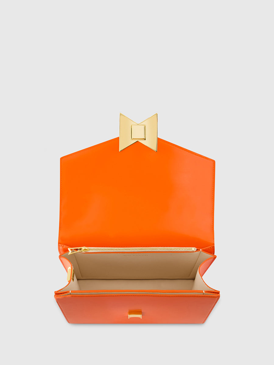 Orange Classic Leather Medium Shoulder Bag with Detachable Strap